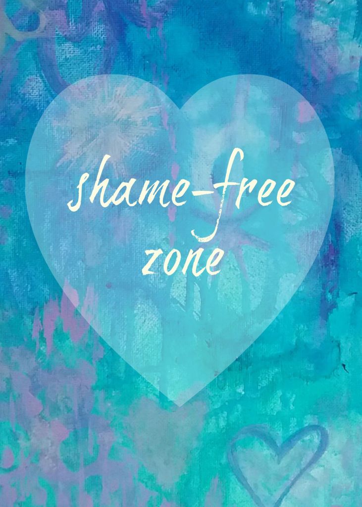 As a reminder to myself and others, I took a photo of a small part of one of my much-larger canvases where I play with acrylic paint, and I made a shame-free zone printable.