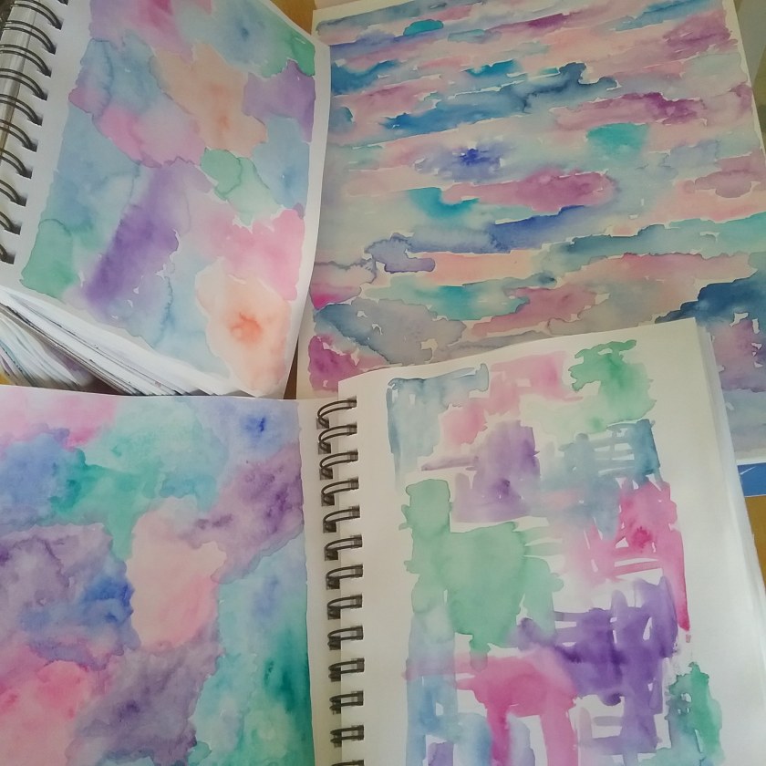 And, as has been the case for the past several years, painting calms me. I still do some paintplay with acrylics on canvas, but my main daily painting lately has been with watercolors – page after page after page of blibs and blobs with watercolors. Just the holding and the moving of the brush, and the paints and the water playing on the page together.