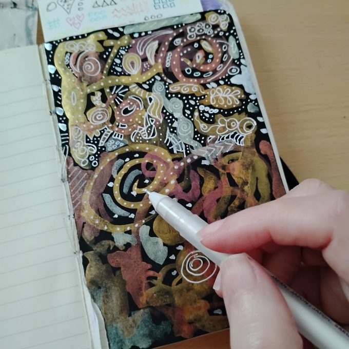 Since Tuesday, I’ve watched a few of the videos from 2018 (I’ve focused on that year since I didn’t sign up for Sketchbook Revival back then). I’ve only watched, I haven’t actually followed along or done any of the specific projects. But watching has made me pick up my paintbrushes and pens more often this week.
